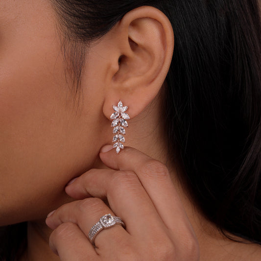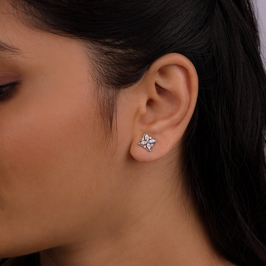 Crystal Bloom 925 Silver Floral Stud Earrings