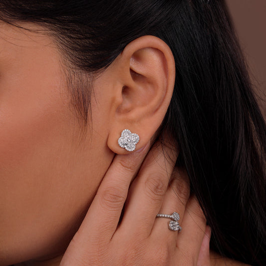 Blossom Gleam Silver-Tone Floral Stud Earrings