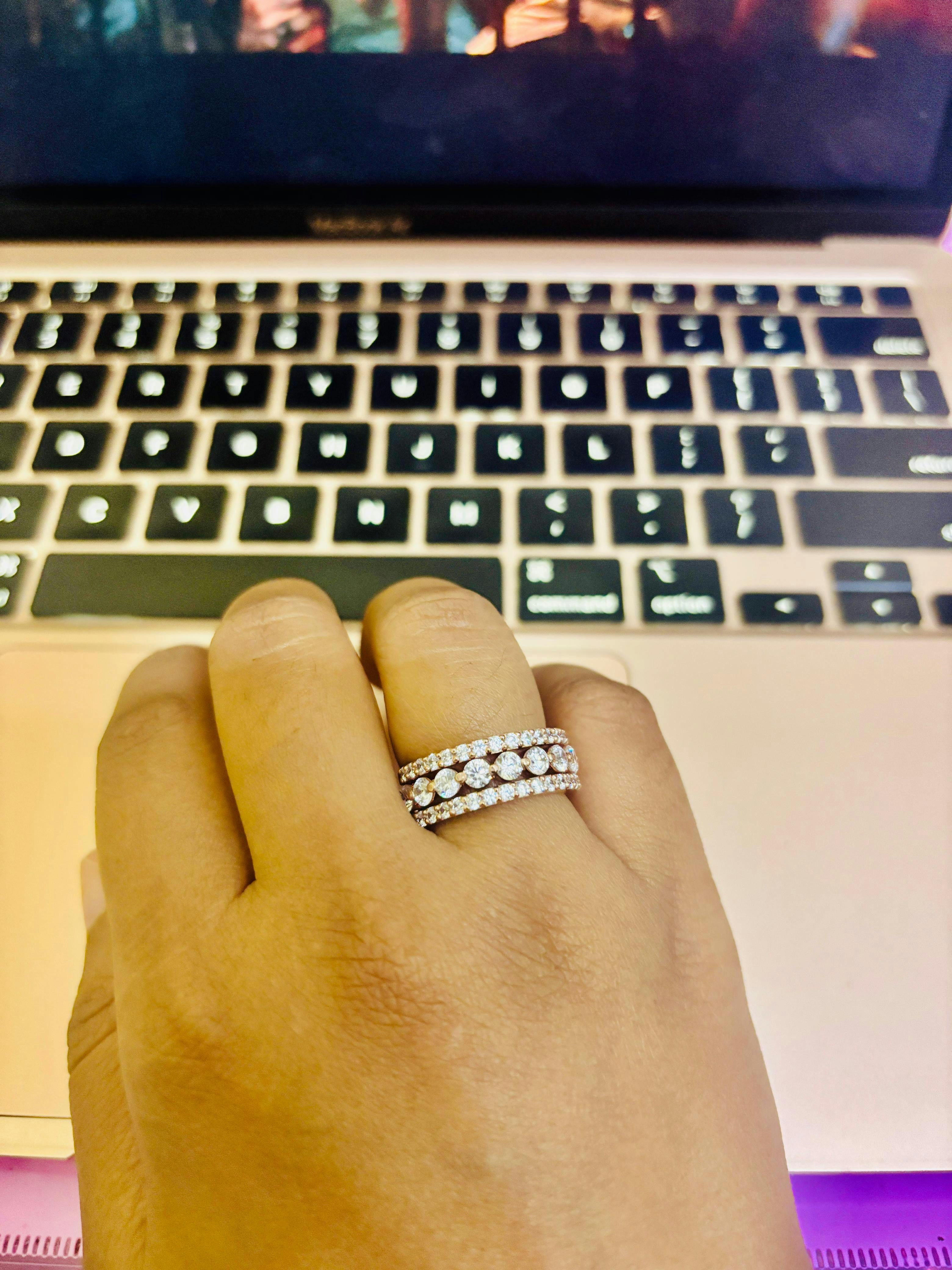 Elevate your jewelry collection with this 7-in-1 versatile diamond ring, crafted in shimmering rose gold and encrusted with sparkling diamonds. Designed for ultimate flexibility, this unique band can be worn in seven different styles – whether as a single elegant piece, a stacked statement, or a mix-and-match combination to suit your mood. Perfect for everyday wear or special occasions, this multi-style diamond ring brings luxury, creativity, and elegance together in one timeless design.