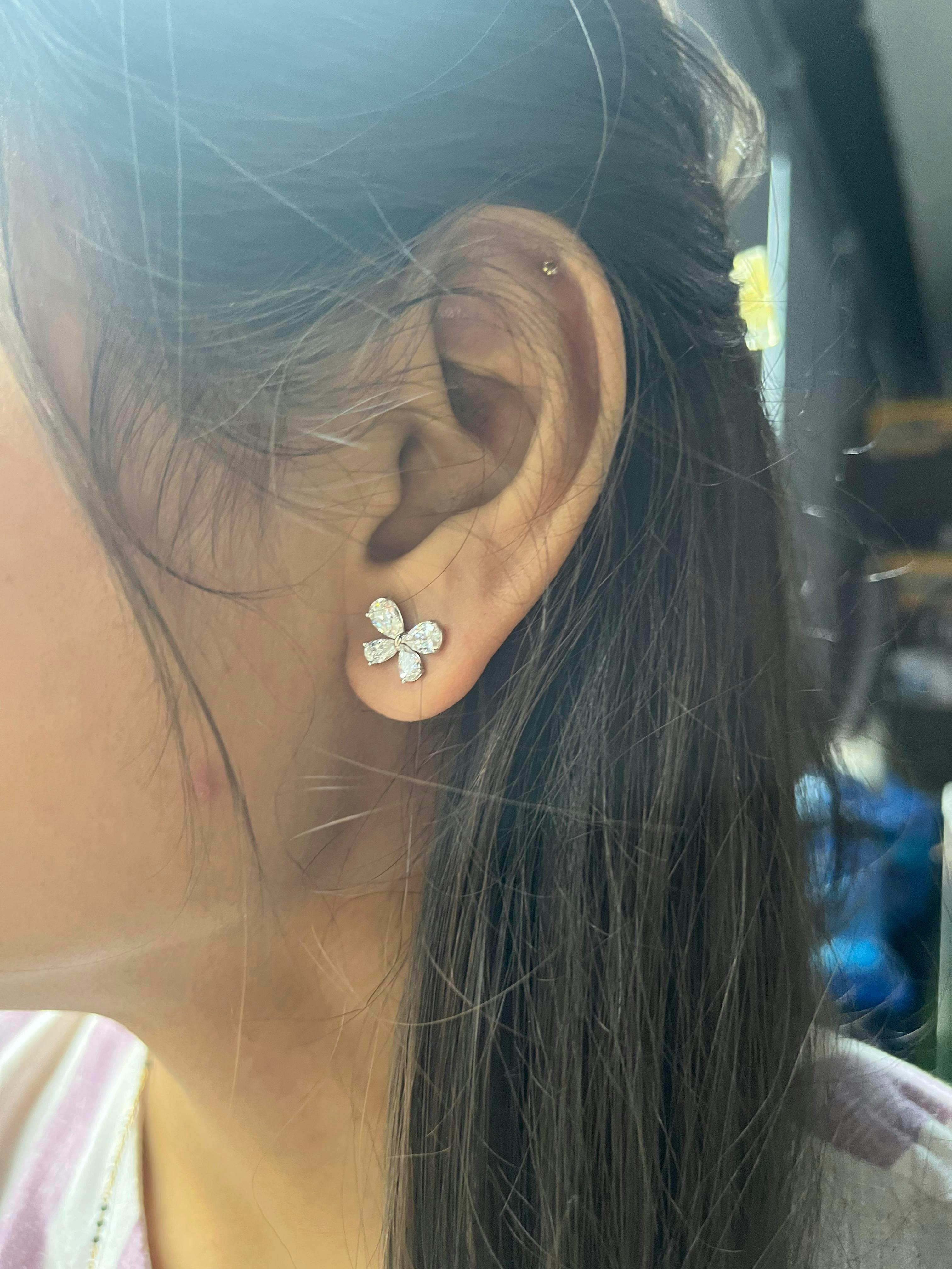Radiate elegance with our Blossom Glow Teardrop Stud Earrings, inspired by the beauty of blooming petals. Each earring features four dazzling teardrop-shaped cubic zirconia stones arranged in a delicate floral design that sits perfectly on your earlobe. The radiant sparkle and timeless symmetry make these studs an effortlessly chic accessory for both casual and formal occasions.