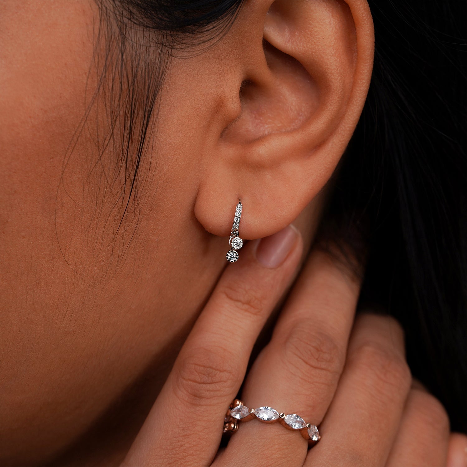 Elevate your everyday elegance with our Celeste Mini Drop Diamond Hoops, crafted to add a subtle yet radiant sparkle to any look. These delicate hoop earrings feature a row of shimmering stones paired with a graceful dangling diamond-cut charm that moves beautifully with every step. Perfect for women seeking “minimal drop hoop earrings,” “daily wear diamond hoops,” or “delicate dangling earrings,” this pair blends sophistication with simplicity. Ideal for office wear, casual styling, and gifting, these hoops bring effortless shine to your jewellery collection.