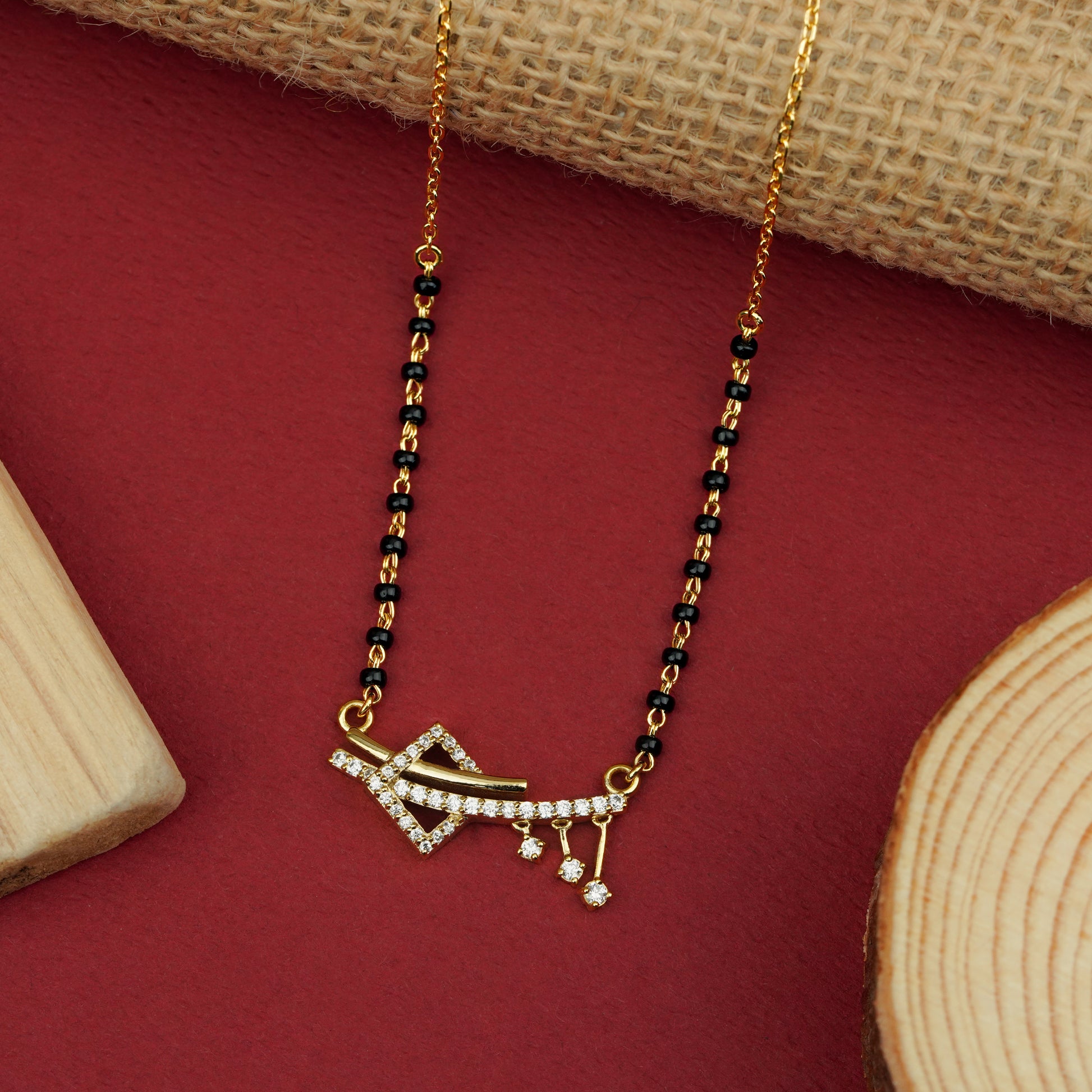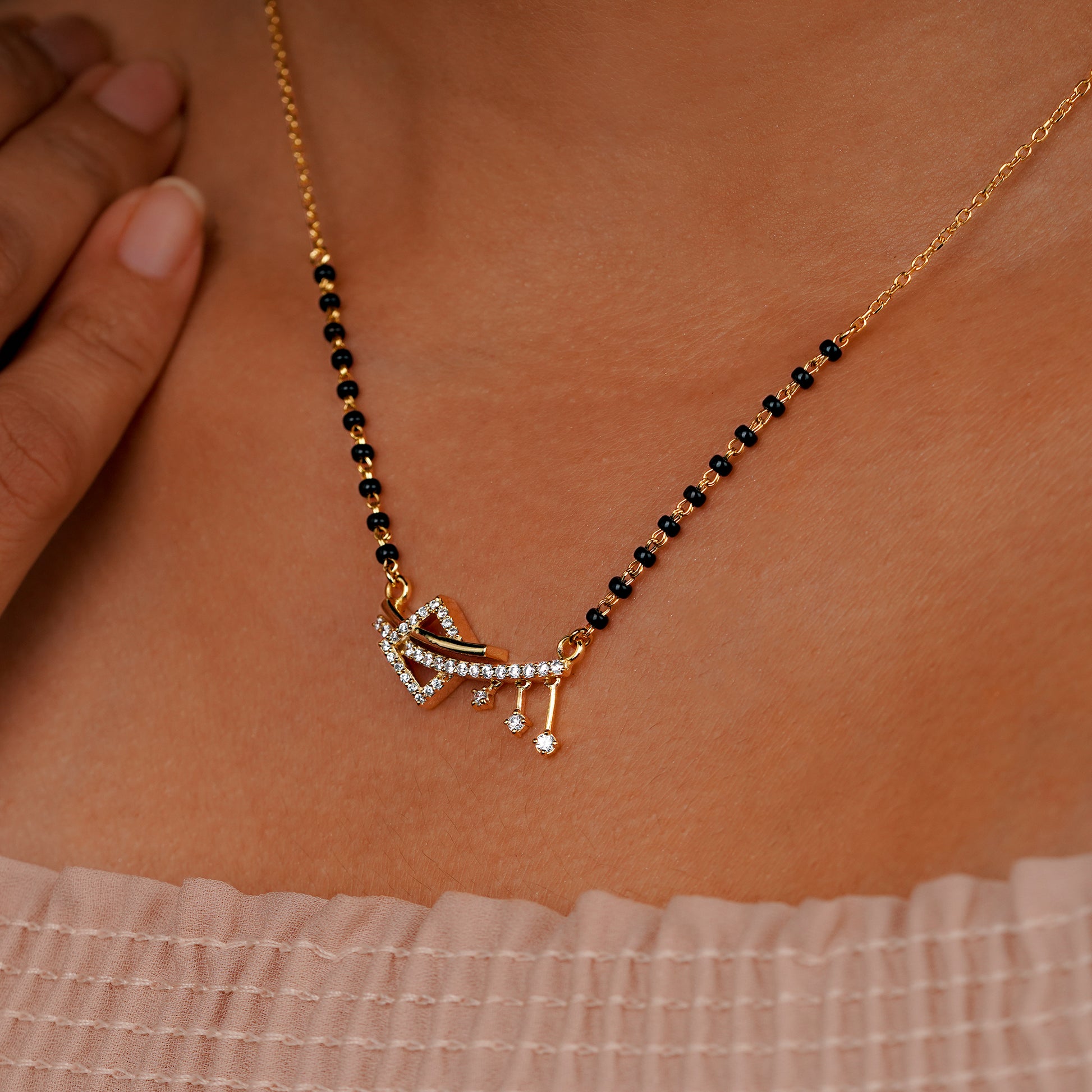 Shine with timeless elegance in the Eternal Glow Diamond Mangalsutra. Crafted in gold with fine black beads, the centerpiece features sparkling diamonds with delicate danglers, symbolizing love and prosperity. A perfect blend of tradition and modern design for everyday wear.