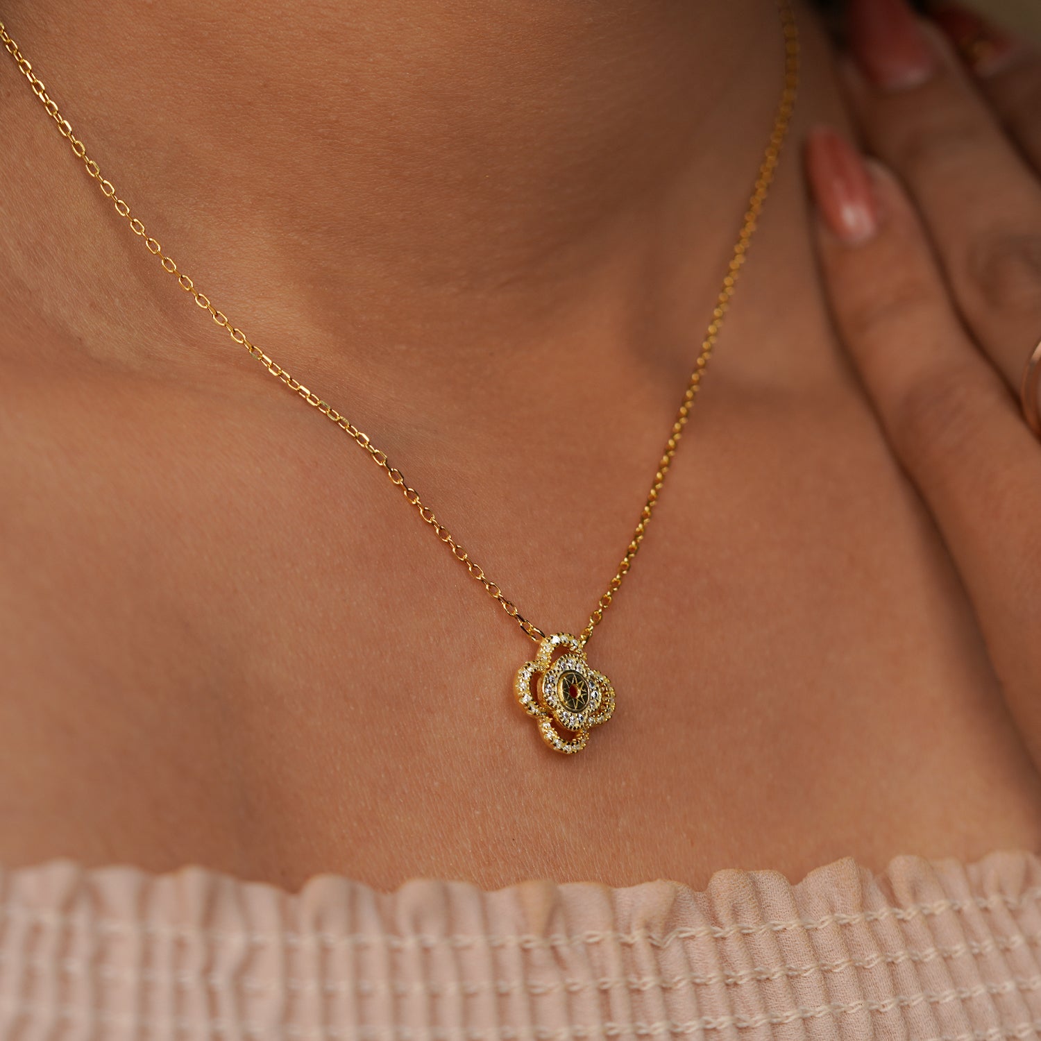Golden Blossom Clover Pendant Necklace
